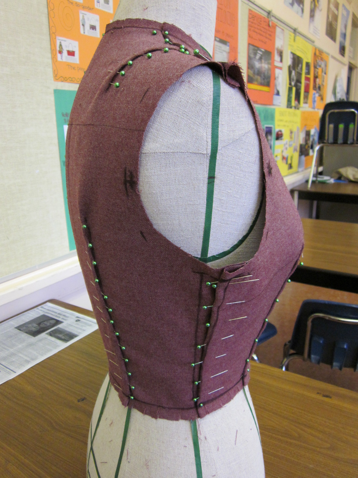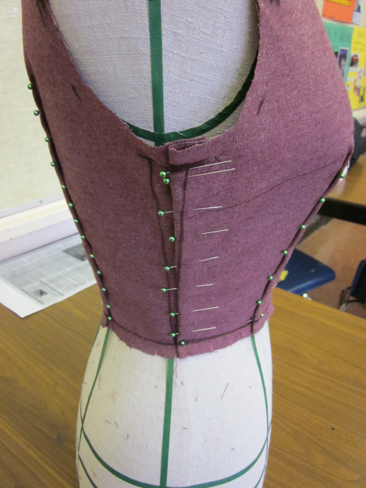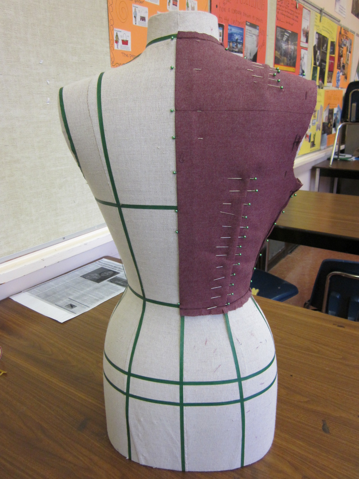 Still got one more class left in my draping night class. I am going to be really glad when it is over because I believe I am more of a pattern drafter than a draper. The last two classes have been frustrating while working on the skirt portion. So frustrating that I didn’t take photos of it! I blame the shoddy mannequins we have to use and perhaps the mannequins aren’t suited to the directions given to us by our instructor. I think there was really only one girl in the class who could get it right without too many problems…and she had a different type of mannequin. Whatever. I did my best.