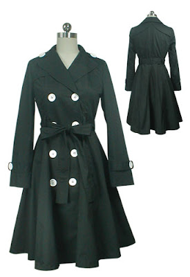 2) I love the idea of wearing full skirts and full skirted dresses with such a trench coat while galumping in the rain!